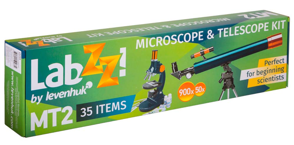 Levenhuk LabZZ MT2 – набор из микроскопа и телескопа – идеальный подарок для любознательного ребенка! В набор входит небольшой удобный микроскоп и простой в управлении телескоп, с которыми познавать окружающий мир будет еще интереснее. Микроскоп подходит для изучения прозрачных объектов, например, тонких срезов растений. Он поставляется с готовыми препаратами и специальными инструментами для работы с микроскопическими образцами. Микроскоп комплектуется тремя объективами и дает увеличения в 75, 300 и 900 крат. Телескоп отличается небольшими размерами и очень простым управлением, диаметр объектива составляет 50 мм – с его помощью можно не только изучать небесные тела, но и следить за наземными объектами. Данный набор прекрасно подходит для дошкольников и младших школьников.