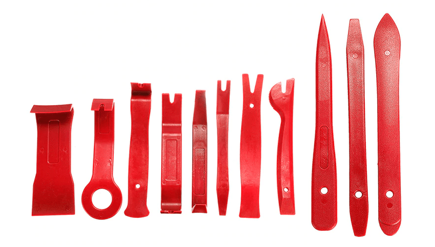 Набор включает в себя 19 съемников под любые задачи. Это позволит вам быстро и безопасно демонтировать любые пластиковые панели и детали интерьера автомобиля, при этом не повредив их крепления.