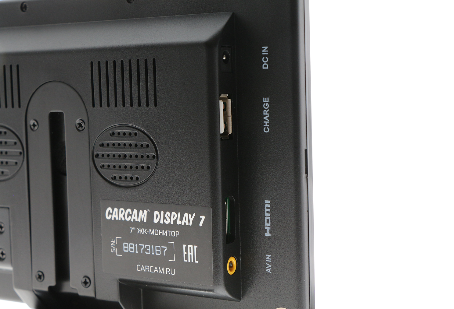 CARCAM Display 7 оснащен HDMI входом, который позволяет подключать монитор к видеорегистратору. Благодаря этому монитор может использоваться для просмотра изображения не только с автомобильных, но и со стационарных систем видеонаблюдения.
