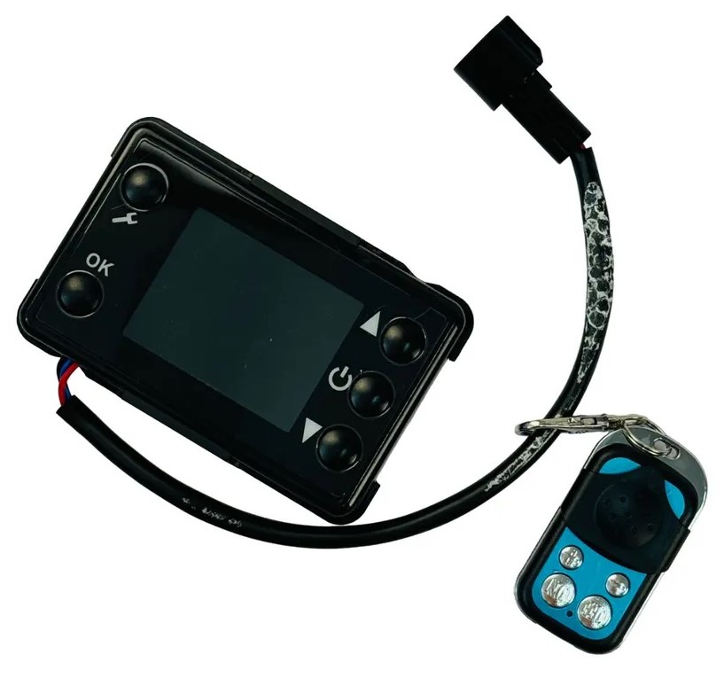 Управление отопителем осуществляется через интуитивно понятную панель с кнопками и ЖК-дисплеем либо с помощью дистанционного пульта, работающего на расстоянии до 50 метров. Это даёт вам свободу выбора способа взаимодействия с устройством, делая использование максимально комфортным.