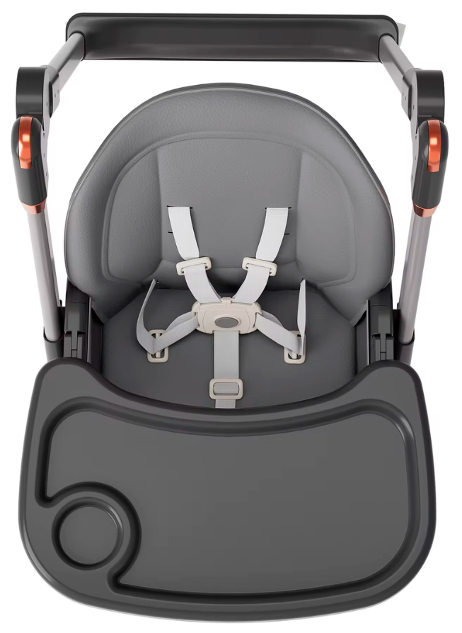 Baby Chair (8122) Black – детский стул с конструкцией 3 в 1 для еды, игр и отдыха. Он оснащен поворотными колесами и тормозами для легкого перемещения и безопасности. Широкое сиденье стульчика шириной 34 см обеспечивает достаточный комфорт, а двухслойная конструкция подноса позволяет легко менять еду и играть. Стул имеет 5-позиционную регулировку высоты, что позволяет ему соответствовать высоте различных обеденных столов. Его простой складной механизм гарантирует, что он занимает минимум места, когда не используется, что делает его идеальным для небольших жилых помещений или мобильных семей. Прочные материалы, включая экологически чистый полипропилен, нержавеющую сталь и полиуретан, обеспечивают как безопасность, так и долговечность. Подходит для детей от рождения до 6 лет.