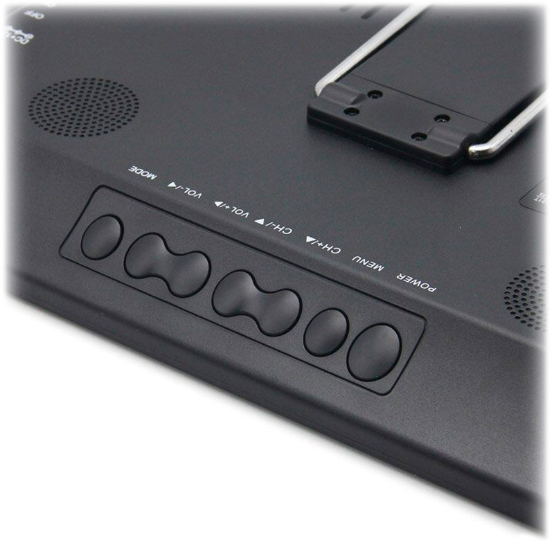 Eplutus 12.1" LED TV EP-121T – это портативный телевизор, который подходит для использования в малогабаритных жилых помещениях, на дачных верандах, на кухнях, а также в автомобильных путешествиях. Телевизор позволяет просматривать более 20 отечественных телеканалов с улучшенным качеством цветного изображения и реалистичным стереофоническим звуком. Помимо аналоговых сигналов, телевизор принимает телесигналы улучшенного цифрового качества, благодаря встроенному тюнеру эфирного стандарта Т2. Входные разъёмы HDMI и VGA позволяют применять устройство в качестве DVD-плеера, игровой консоли либо цветного компьютерного монитора. Два встроенных динамика мощностью по 5 Вт обеспечивают высокое качество стереофонического звука. Пульт дистанционного управления и внешняя антенна входят в комплектацию. Имеется возможность закрепления на стене, для этого используются специальные приспособления. Встроенный аккумулятор 3500 mAh обеспечивает до 3 часов работы без подзарядки. Есть функция автоматического выключения при отсутствии сигнала, что позволяет экономить заряд батареи.
