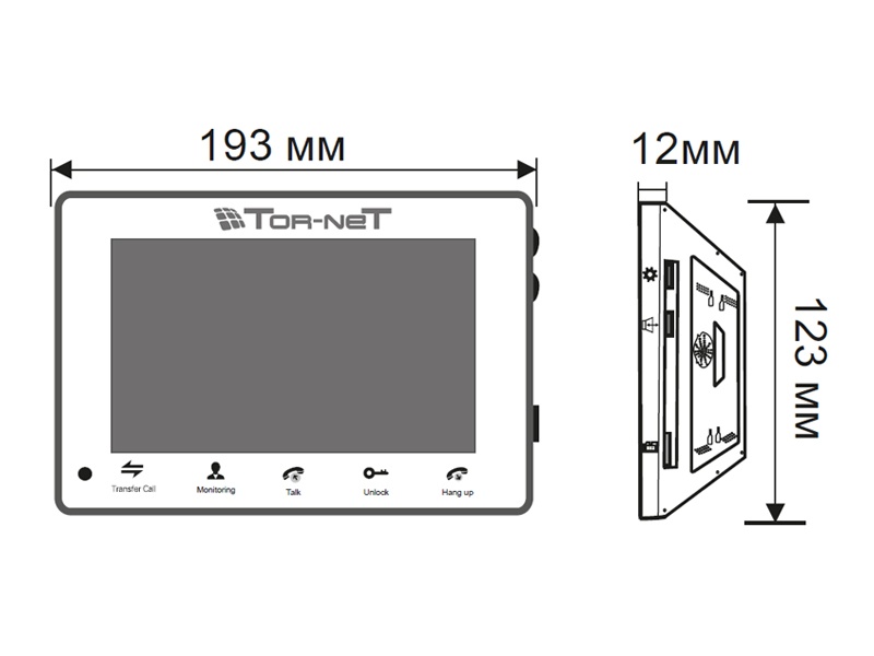 Домофон работает по принципу Touch Screen - сенсорные кнопки управления на экране монитора. Поддерживается функция передачи видео- и аудиосигнала от вызывной панели на Ваш смартфон или планшет с возможностью просмотра фотографий и видео с монитора.