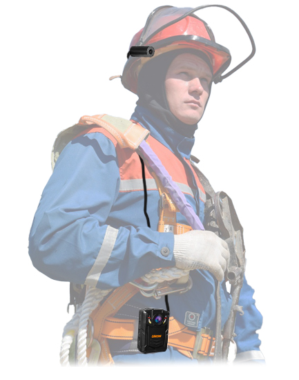 В комплект входит выносная Full HD камера, которая обладает компактными габаритами и удобно крепится на каске сотрудника при помощи кронштейна.